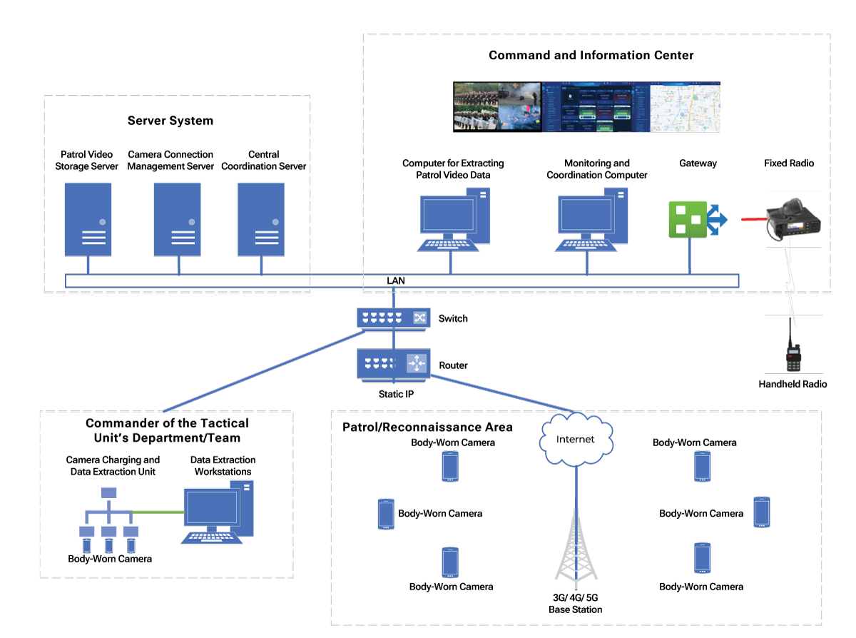 - Enables proactive video stream pulling from the camera via 4G/5G to the control desk without requiring consent from the camera wearer (or configurable to require approval upon request).
